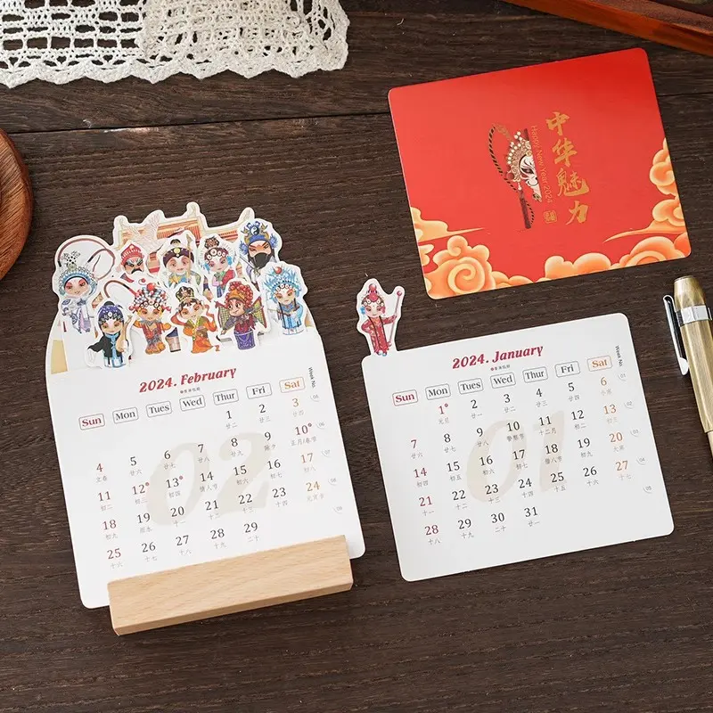 The standard edition is a 100 × 200 mm small desk calendar made of three main components: